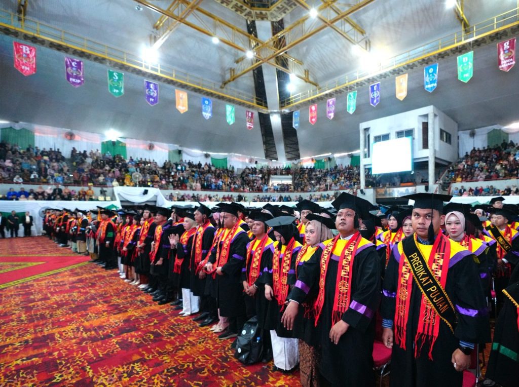 Sebanyak 1.112 wisudawan terdiri dari sepuluh lulusan program doktor, 112 lulusan program magister, 953 lulusan program sarjana, dan 37 lulusan program diploma, mengikuti kegiatan ini dengan penuh khidmat.