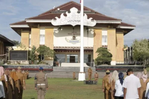 Diskominfotiksan Pesawaran_ Asisten Bidang Pemerintahan & Kesra Kab. Pesawaran Sunyoto menjadi Pembina dalam upacara bendera…