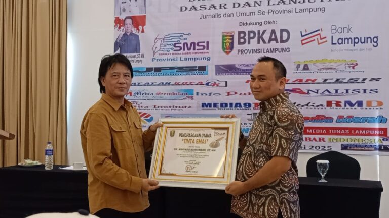 Kepala BPKAD Marindo Kurniawan Terima Penghargaan Utama Tinta Emas Dari Media Harian Pikiran Lampung
