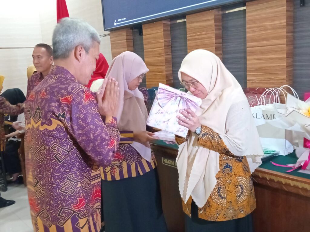 Ditutup dengan pemberian cindramata dimeriah kan dengan pemberian door prrze kemudian para pejabat dan staf pengadilan memberikan penghormatan terakhir kepada rekan-rekan mereka yang akan mengemban tugas baru (red)