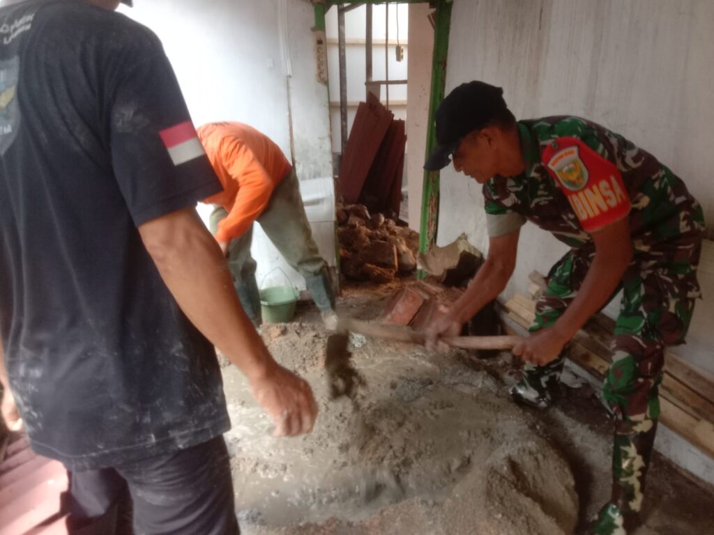 Babinsa Kelurahan Perwata Sertu Supriyanto Turun Tangan Bantu Perbaikan Rumah Korban Longsor di Bandar Lampung