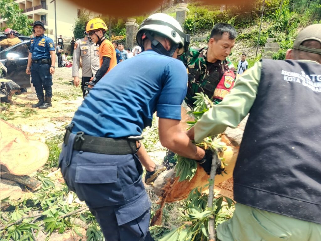 Berdasarkan laporan lapangan, pohon yang tumbang secara tiba-tiba menyebabkan satu orang mengalami luka berat, yaitu patah pada kaki kanan. Korban, berinisial R (33), yang merupakan pengemudi mobil Mitsubishi XPander, sempat terhimpit di dalam kendaraannya sebelum akhirnya berhasil dievakuasi. Mobil kedua yang tertimpa adalah Honda BRV. Kedua kendaraan mengalami kerusakan berat.
