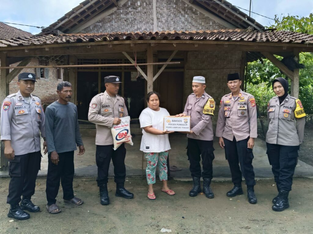 Dalam kesempatan tersebut, Kapolsek Punggur beserta jajarannya turun langsung ke lapangan untuk menyerahkan bantuan sembako kepada warga, tepatnya di Kampung Ngesti Rahayu Kecamatan Punggur, Lampung Tengah.