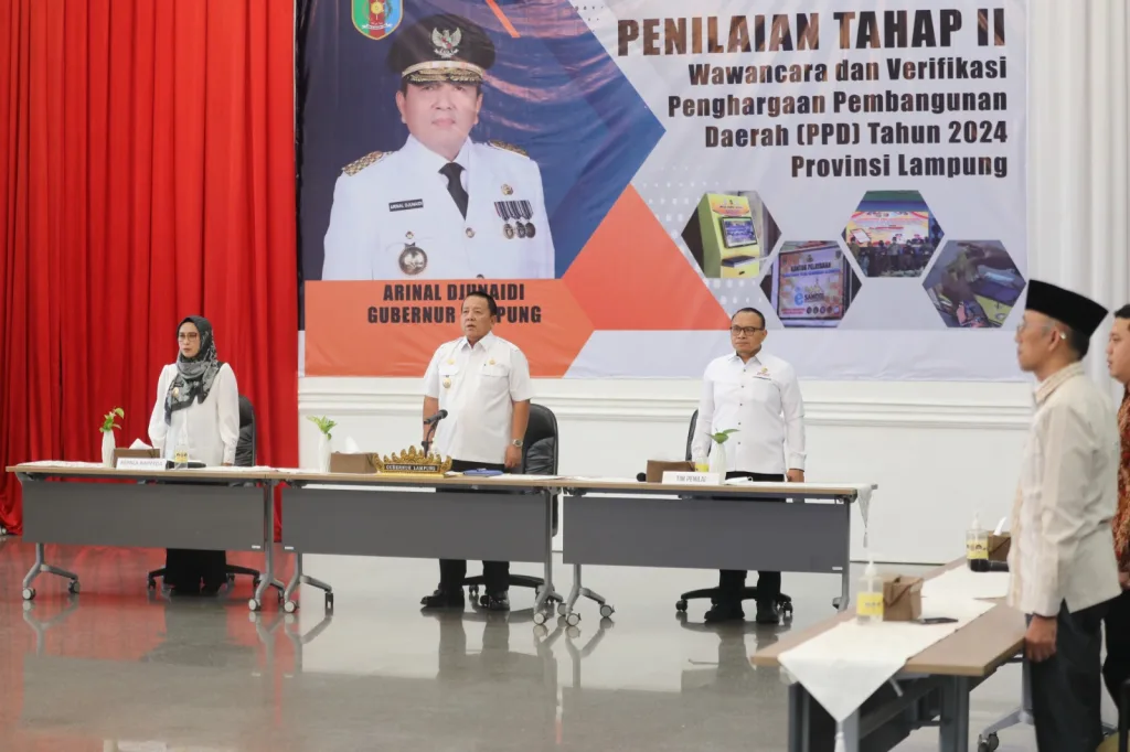 BANYUWULU.COM – BANDARLAMPUNG —– Gubernur Lampung Arinal Djunaidi mengikuti kegiatan Wawancara dan Verifikasi Penilaian Tahap II Penghargaan Pembangunan Daerah (PPD) Tahun 2024, setelah lolos dalam Penilaian Tahap I bersama 12 Provinsi lainnya.