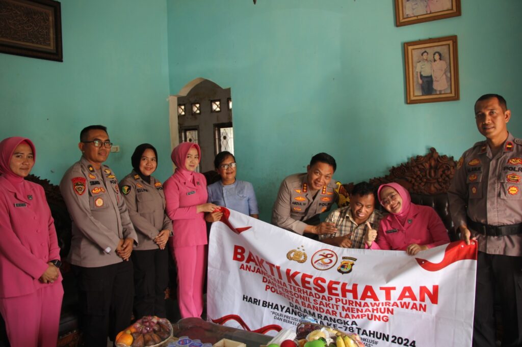 “Selain menyambut HUT Bhanyangkara Ke 78, tentunya ini merupakan bentuk kepedulian kami, perhatian kami kepada para Purnawirawan Polri dan anggota kami yang menderita sakit menahun” kata Kapolresta Bandar Lampung Kombes Pol Abdul Waras.