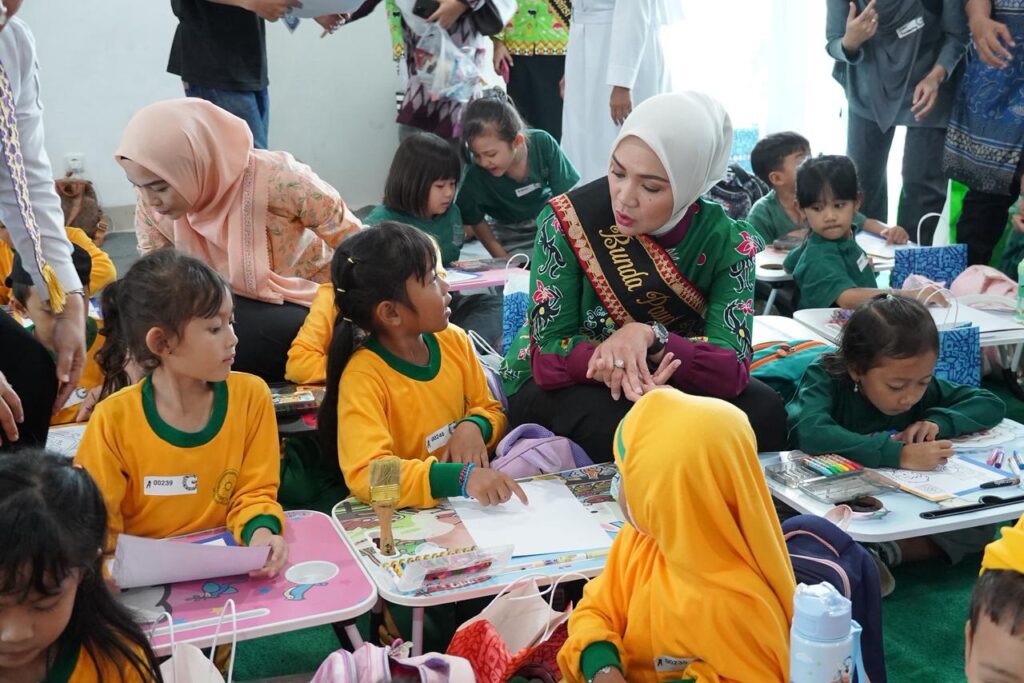 Dalam kesempatan tersebut Bunda Paud Provinsi Lampung berinteraksi langsung dengan anak-anak melalui dialog ringan, bernyanyi bersama, serta mendengarkan cerita dan ungkapan cita-cita mereka.
