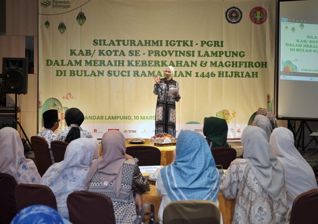 BANYUWULU.COM- Bandar Lampung, — Bunda PAUD Provinsi Lampung, Purnama Wulan Sari Mirza menghadiri Silaturahmi Ikatan Guru Taman Kanak-Kanak Indonesia (IGTKI) – Persatuan Guru Republik Indonesia (PGRI) Kabupaten Kota se-Provinsi Lampung bertempat di Grand Anugerah Hotel, Minggu (09/03/2025).