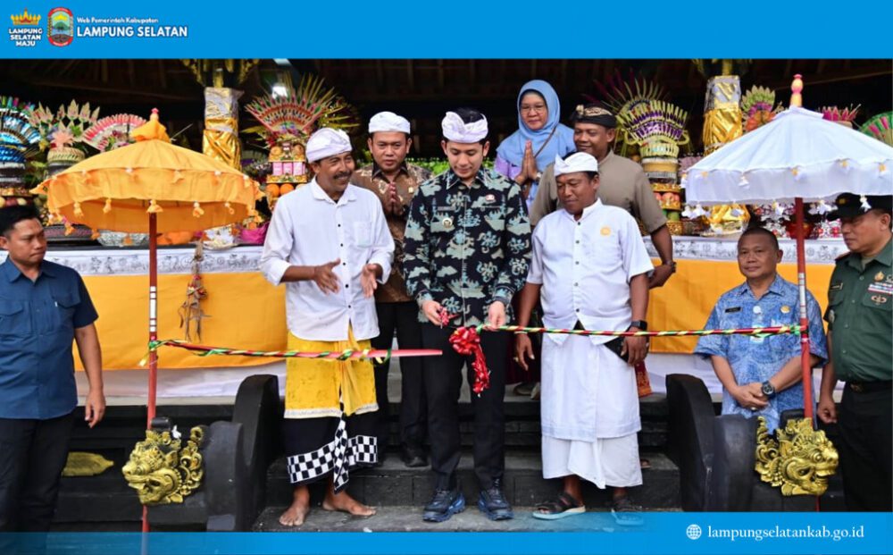 BANYUWULU.COM- LAMSEL, Palas – Bupati Lampung Selatan Radityo Egi Pratama meresmikan Balai Banten Pura Puseh Kertibuana di Desa Bali Agung, Kecamatan Palas, Kamis (6/11/2025). Fasilitas ini menjadi simbol penguatan nilai spiritual dan budaya umat Hindu sekaligus wujud kerukunan antarumat beragama di wilayah tersebut.