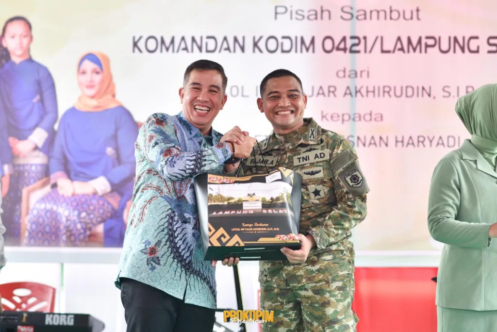 Demikian disampaikan Bupati Pesawaran Dendi Ramadhona saat acara Pisah Sambut Jabatan Komandan Kodim 0421/Lampung Selatan dari Letkol Inf Fajar Akhirudin, kepada Letkol Inf Esnan Haryadi di Makodim 0421/Lampung Selatan, Sabtu (17/2/24).