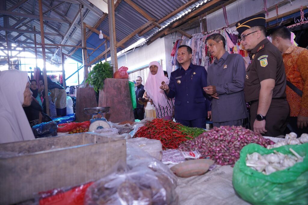 BANYUWULU.COM- Pringsewu, 10/03/25 – Bupati Pringsewu, H. Riyanto Pamungkas, bersama Forkopimda Pringsewu turut hadir Kajari Pringsewu Raden Wisnu Bagus Wicaksono, SH., M. Hum, Ketua DPRD Pringsewu Suherman, SE, Dandim 0424 Tanggamus yang diwakili oleh Pabung Pringsewu Kapten Inf Rahmat Hartanto.S.sos, Perwakilan Polres Pringsewu, turut hadir juga Kepala BPS Pringsewu Eko Purnomo, SST., MM, rombongan melakukan inspeksi di pasar tradisional untuk memantau harga dan ketersediaan kebutuhan pokok pada minggu pertama Ramadhan 1446 H, Senin (10/3/2025). Pasar Banyumas menjadi titik pertama dalam rangkaian kunjungan yang dilakukan oleh Bupati Pringsewu bersama jajaran pemerintah daerah untuk memastikan kelancaran pasokan bahan pokok selama bulan Ramadhan.