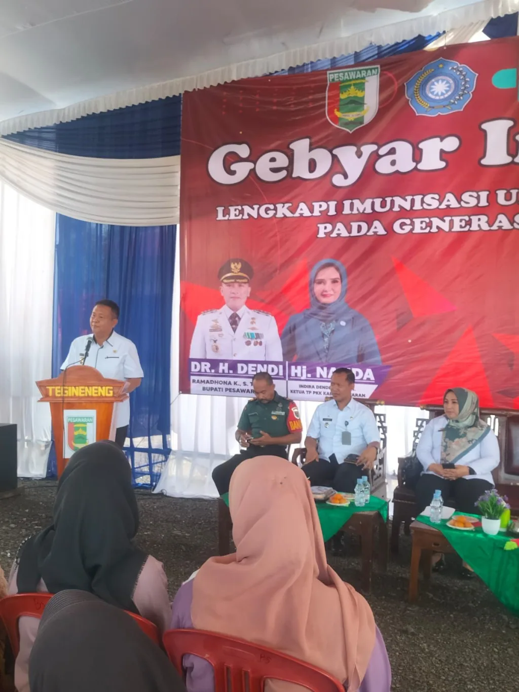 Demikian disampaikan Bupati Pesawaran Dendi Ramadhona diwakili Asisten Administrasi Umum Setdakab Pesawaran Heriansyah saat membuka kegiatan Gebyar Imunisasi Rotavirus bagi Bayi untuk Mencegah Stunting di Kabupaten Pesawaran.
