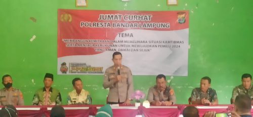 banyuwulu com – Bandar Lampung – Kepolisian Resor Kota Bandar Lampung Polda Lampung menggelar kegiatan pembinaan dan penyuluhan “Curhat Kamtibmas” sebagai sarana menjalin komunikasi dengan aparatur perangkat tingkat kelurahan dan masyarakat guna menciptakan situasi kamtibmas yang aman dan kondusif.
