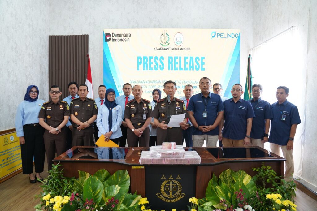 BANYUWULU.COM- KEJAKSAAN TINGGI LAMPUNG – Kepala Kejaksaan Tinggi Lampung Danang Suryo Wibowo, SH, LLM., Wakil Kepala Kejaksaan Tinggi Lampung Suwandi, SH, MHum., beserta seluruh jajaran pada hari Selasa tanggal 21 April 2026 bertempat di Gedung Video Conference Pimpinan, menyelenggarakan konferensi pers terhadap keberhasilan Bidang Perdata dan Tata Usaha Negara Kejati Lampung melakukan Pemulihan Keuangan Negara senilai Rp.1.534.737.270,- (satu milyar lima ratus tiga puluh empat juta tujuh ratus tiga puluh tujuh ribu dua ratus tujuh puluh rupiah) melalui jalur Bantuan Hukum Non Litigasi.