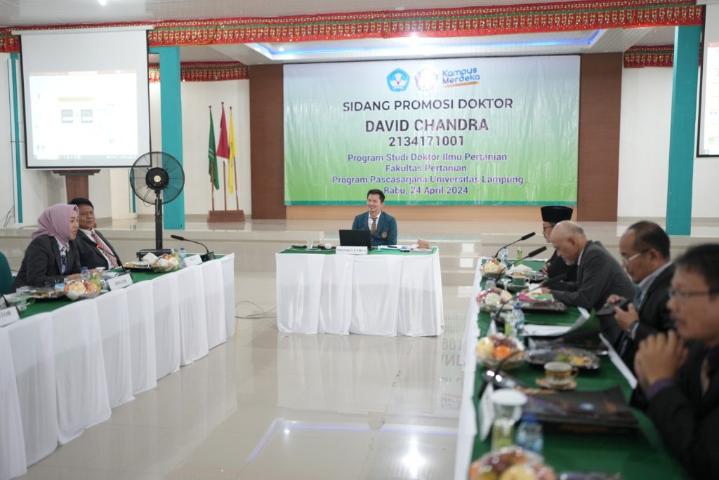 Dengan kelulusannya, David menjadi lulusan ke-24 pada Program Studi Doktor Ilmu Pertanian Unila dengan menghabiskan masa studi dua tahun delapan bulan dengan IPK 4,00.