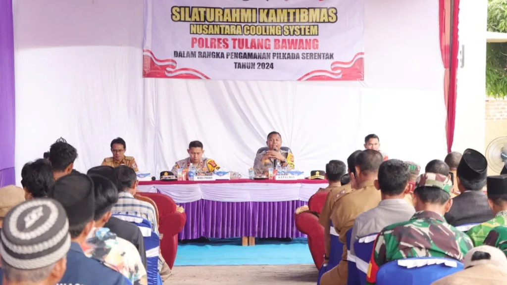BANYUWULU.COM- Tulang Bawang – Memasuki tahap kampanye pada pelaksanaan Pemilihan Kepala Daerah (Pilkada) serentak 2024, Polres Tulang Bawang, Polda Lampung, kembali menggelar silaturahmi kamtibmas Nusantara Cooling System (NCS) yang dilaksanakan di dua lokasi berbeda yang ada di wilayah hukumnya.