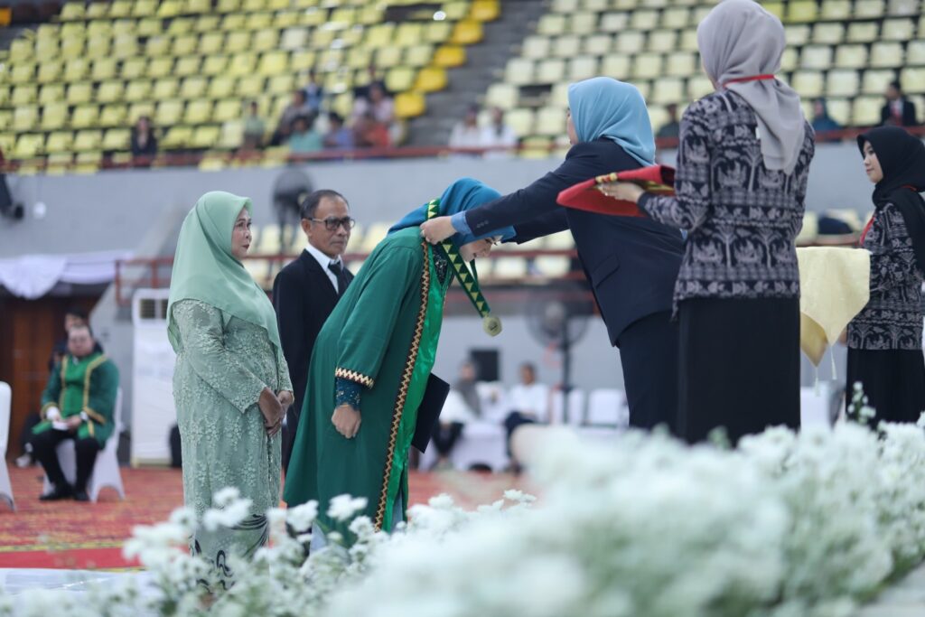 Rektor Unila Prof. Dr. Ir. Lusmeilia Afriani, D.E.A., IPM., ASEAN Eng., dalam sambutannya menyampaikan selamat kepada para dokter yang baru dilantik beserta orang tua mereka.