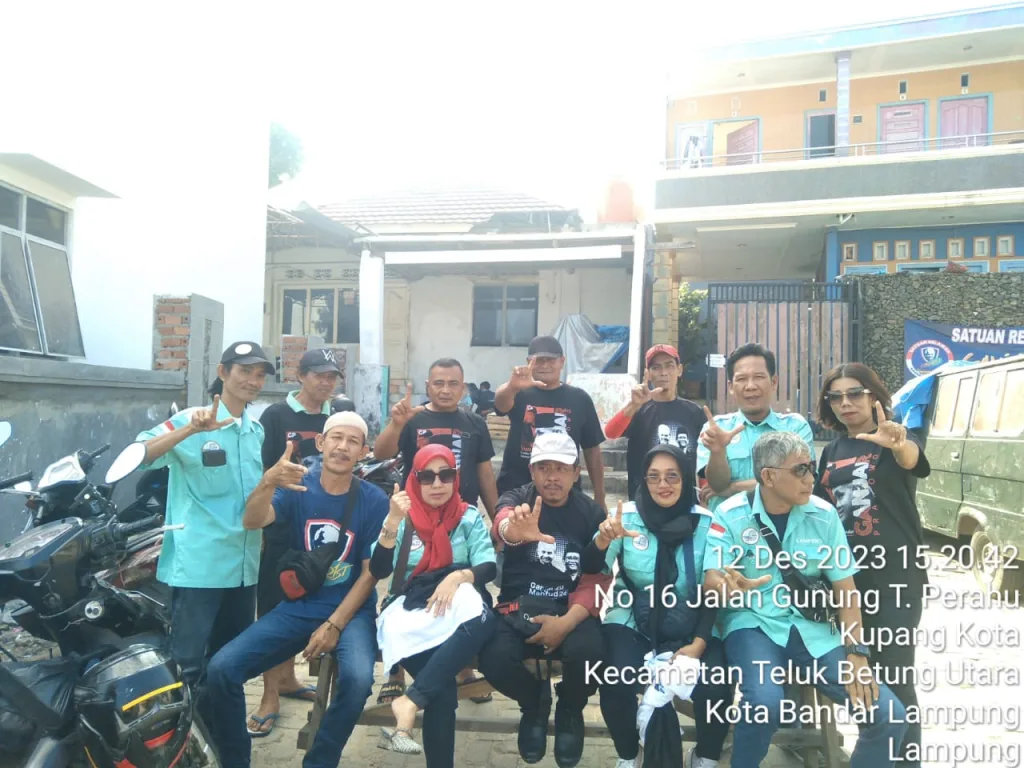 BANYUWULU.COM- BANDARLAMPUNG – Relawan pemenangan calon presiden dan calon wakil presiden (capres-cawapres) Indonesia 2024 nomor urut 3 Ganjar Pranowo-Mahfud MD (Ganjar-Mahfud), mengadakan aksi simpatik bakti sosial (baksos) bersih-bersih lingkungan di sepanjang badan dan tepian Jl Tangkuban Perahu, Kelurahan Kebun Kelapa, Kecamatan Telukbetung Utara, Bandarlampung, pada Selasa petang, 12 Desember 2023.