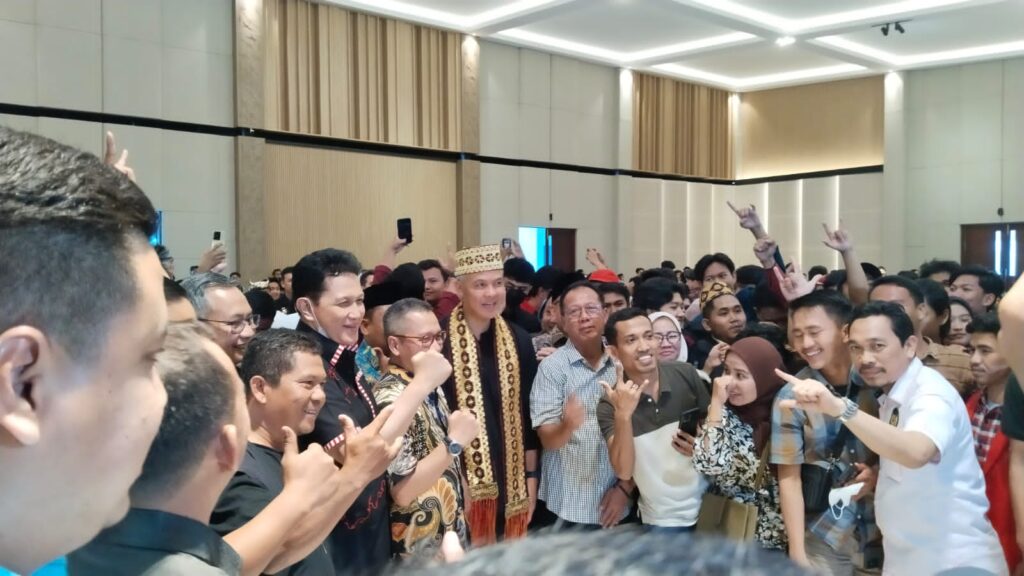 Banyuwulu.com – Bandar Lampung – Ribuan pemuda dari beragam latarbelakang organisasi dan kampus antusias mengikuti stadium general yang dihadiri Tokoh Nasional Ganjar Pranowo sebagai narasumber, di Mahligai Agung Convention Hall, Universitas Bandar Lampung, Rabu, 25 Oktober 2023.