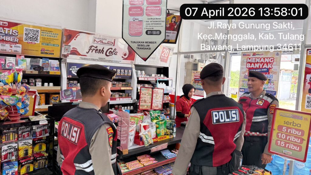 Kegiatan pengamanan yang berjalan penuh disiplin ini dilaksanakan pada hari ini, Selasa, 07 April 2026, mulai pukul 13.00 WIB hingga selesai. Personil gabungan yang dipimpin langsung oleh Aiptu Jon Heriyanto beserta tim, menyusuri titik-titik vital di wilayah hukum Polsek Menggala, meliputi Jalan Raya Gunung Sakti dan Jalan Lintas Timur Kecamatan Menggala.