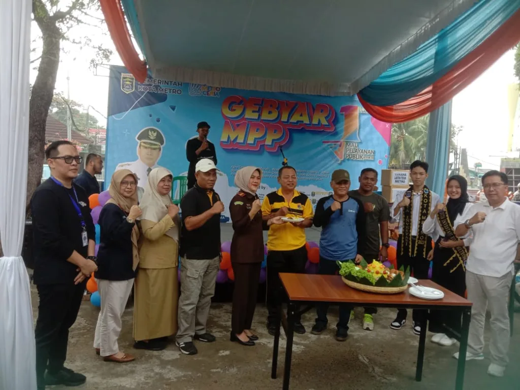 BANYUWULU.COM- Metro –Mall Pelayanan Publik (MPP) KotaMetro menggelar Gebyar 1 tahun MPP dalam rangka perayaan hari ulang tahun (HUT) yang pertama tahun 2023 , kegiatan berlangsung di Halaman Gedung Sesat/MPP Bumi Sai Wawai, Selasa (05/11/2023).