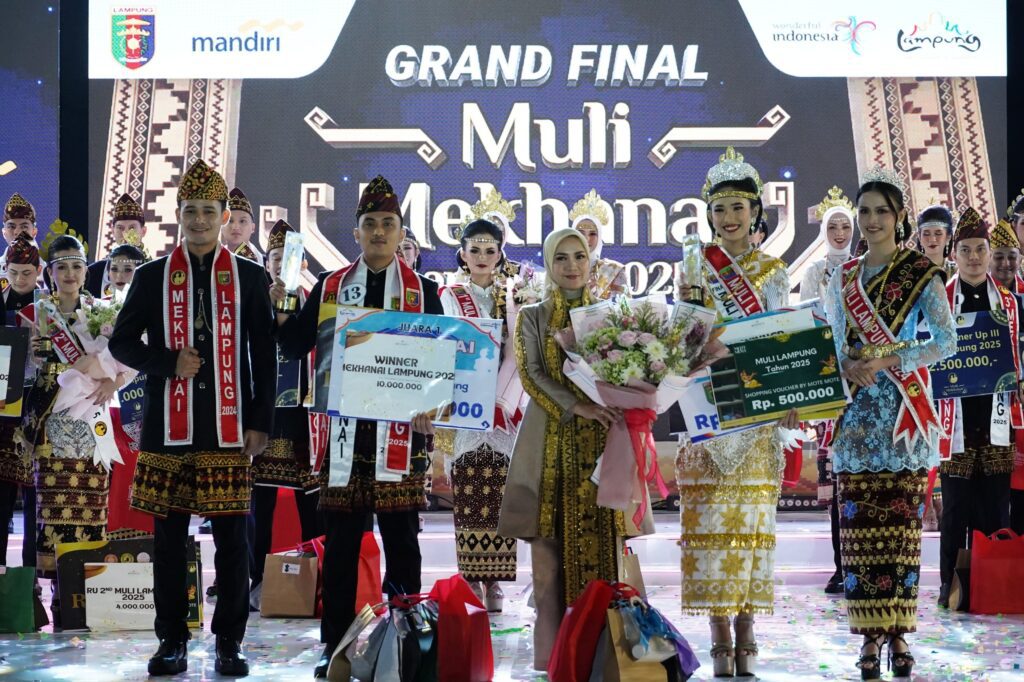Setelah melalui beberapa tahap penilaian, keluar sebagai Pemenang Muli Mekhanai Provinsi Lampung Tahun 2025, diraih oleh Muli asal Kota Bandar Lampung Marcheline Aurely dan Mekhanai asal Kabupaten Tulang Bawang Muhammad Adit Bintang Hartahta. (Dinas Kominfotik Provinsi Lampung).