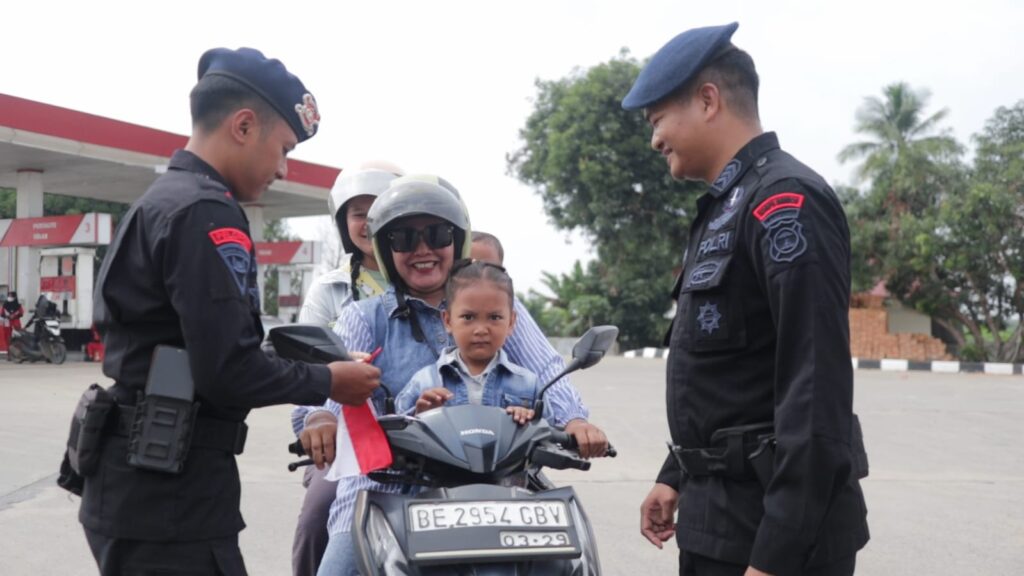 Tak hanya itu, mereka juga turun langsung ke jalan untuk membagikan bendera Merah Putih kepada masyarakat serta memasangkannya pada kendaraan-kendaraan yang melintas di sekitar Mako dan jalan-jalan utama di wilayah Kabupaten Lampung Tengah dan Lampung Timur.
