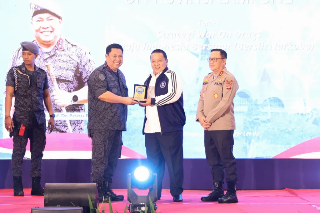 Banyuwulu.com – BANDARLAMPUNG —- Gubernur Lampung Arinal Djunaidi dan Kepala Badan Narkotika Nasional (BNN) RI Prof. Dr. Petrus Reinhard Golose bersinergi bersama mengajak semua pihak terus melakukan langkah-langkah nyata dalam mencegah peredaran gelap narkotika dan menggelorakan semangat akselerasi war on drugs di setiap pergerakannya.