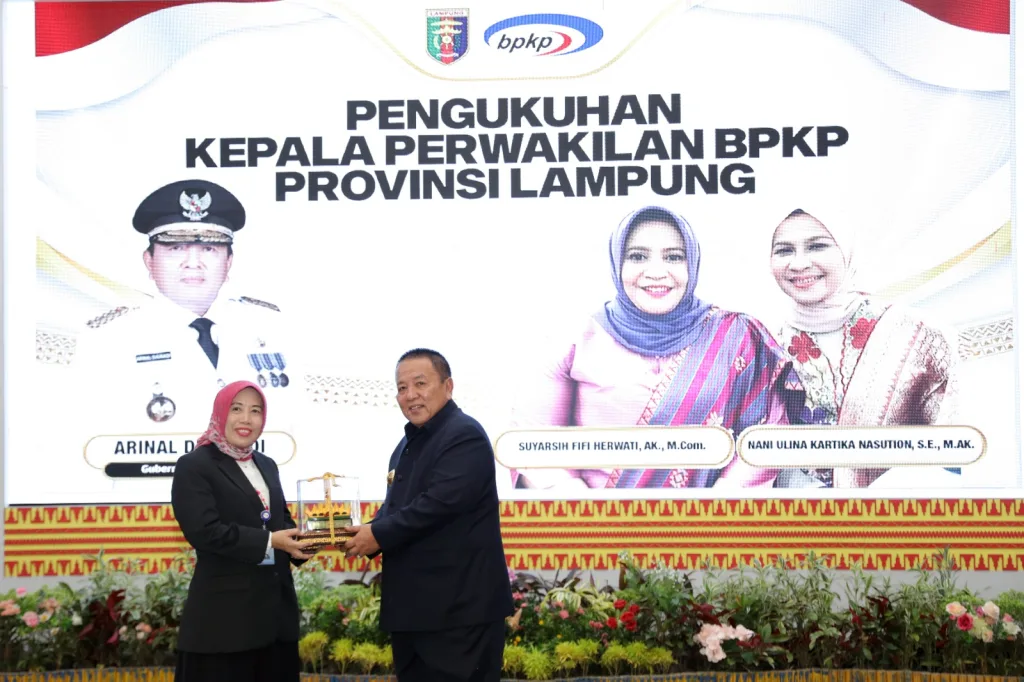 BANYUWULU.COM – BANDARLAMPUNG — Gubernur Lampung Arinal Djunaidi mengukuhkan Kepala Perwakilan Badan Pengawasan Keuangan dan Pembangunan (BPKP) Provinsi Lampung, Nani Ulina Kartika Nasution yang menggantikan Suyarsih Fifi Herwati, di Mahan Agung, Bandar Lampung, Senin (22/1/2024).