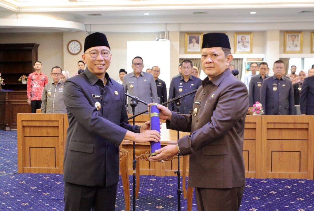 BANYUWULU.COM- BANDARLAMPUNG —– Gubernur Lampung Rahmat Mirzani Djausal melantik Muhammad Firsada sebagai Penjabat (Pj) Sekretaris Daerah Provinsi Lampung di Ruang Rapat Utama, Kantor Gubernur Lampung, Bandarlampung, Kamis (20/3/2025).