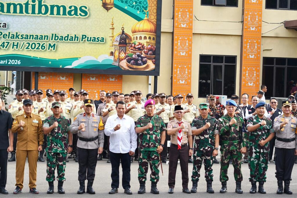 BANYUWULU.COM- Metro – Kepala Staf Korem (Kasrem) 043/Gatam Kolonel Inf Sumarlin Marzuki., S.E., M.Han., Senin (23/2/2026) menghadiri kegiatan Apel Siaga Kamtibmas dalam rangka menjaga situasi Kamtibmas selama pelaksanaan ibadah puasa pada bulan Ramadan 1447 H / 2026 M, yang di pimpin Kapolda Lampung Irjen Pol. Helfi Assegaf, S.I.K., M.H., bertempat di lapangan Apel Polda Lampung Jl. Terusan Ryacudu, Way Huwi, Kecamatan Jati Agung, Kabupaten Lampung Selatan.