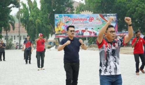 BANYUWULU.COM- Lamsel – Sebagai bentuk komitmen dalam menciptakan budaya hidup sehat, jajaran Pemerintah Kabupaten (Pemkab) Lampung Selatan rutin menggelar senam bersama setiap Jumat pagi.