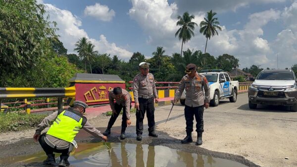 Jalan Berlubang di Jalinsum Way Kanan, Kapolres Menghimbau Pengendara Berhati-hati Saat Melintas