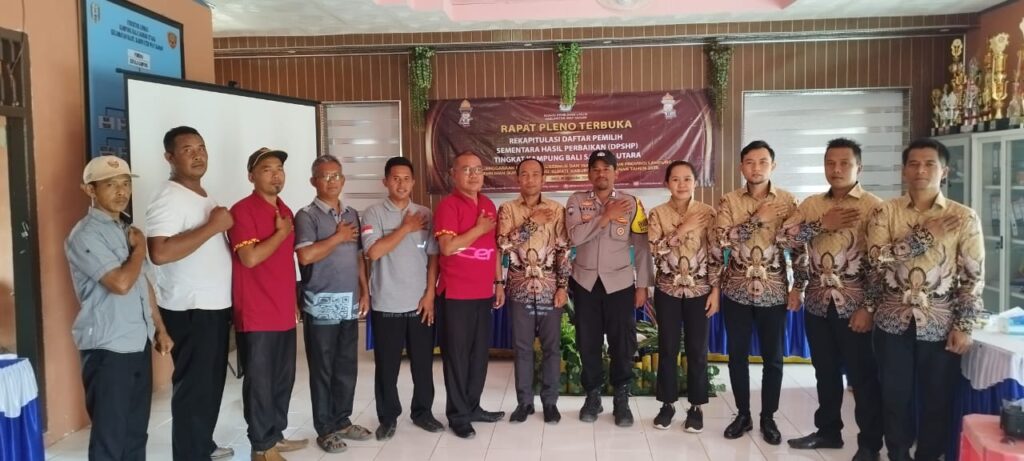 BANYUWULU.COM- Waykanan – Polsek Banjit Polres Way Kanan melaksanakan pengamanan rapat pleno terbuka rekapitulasi daftar pemilih sementara hasil perbaikan (DPSHP) tingkat Kampung Bali sadhar Utara dalam penyelenggaraan Pemilihan Gubernur dan Wakil Gubernur Propinsi Lampung dan pemilihan Bupati dan Wakil Bupati Kabupaten Way Kanan bertempat di Balai Kampung Bali sadhar Utara Kecamatan Banjit Kabupaten Way Kanan. Minggu (08/09/2024).