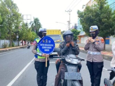 Tidak hanya memberikan bantuan, Patroli Muli Sat Lantas Polresta Bandar Lampung selalu memberikan himbauan dikmas lantas kepada para pengguna jalan. (idal/rls).