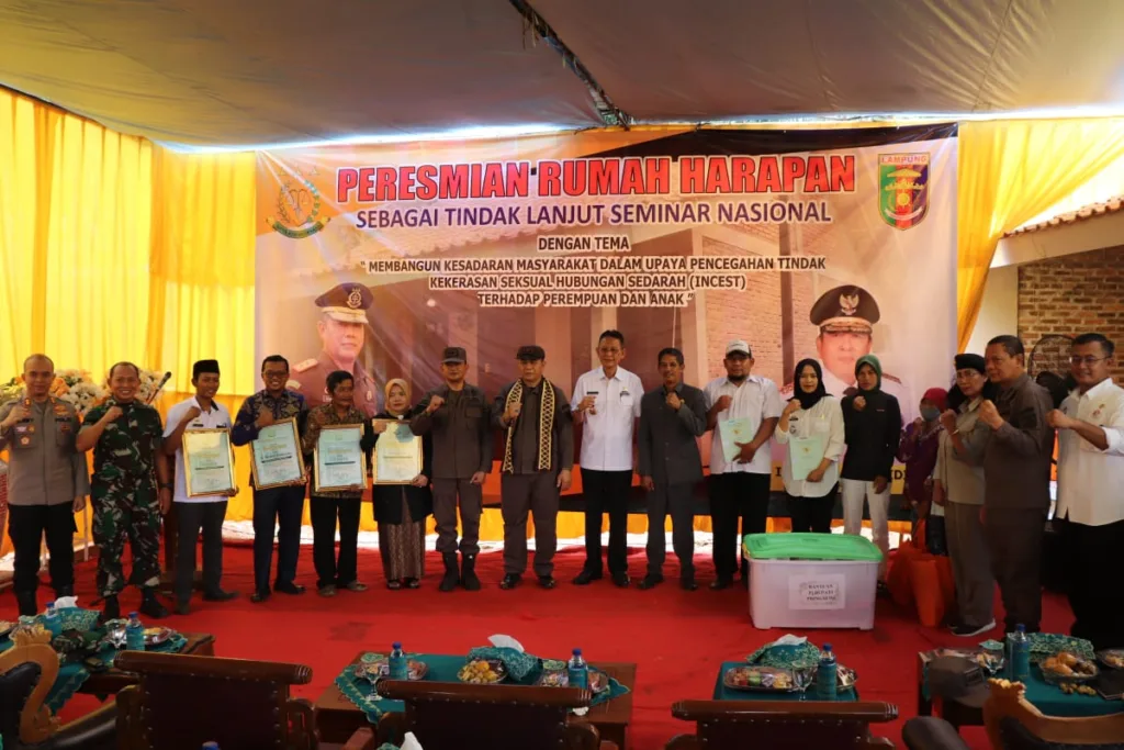 Pejabat Bupati Pringsewu Adi Erlansyah, SE., MM., dalam sambutan mengatakan rumah huni yang diberi nama Rumah Harapan tersebut merupakan bentuk bantuan sekaligus inisiatif dari Kejaksaan Negeri Pringsewu bersama Ketua DPRD dan masyarakat setempat dalam upaya memberikan perlindungan dan kesejahteraan kepada korban incest yang mengalami trauma akibat perbuatan ayah kandung korban.