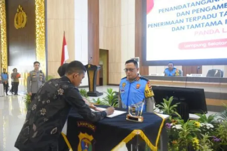 Pelaksanaan Pakta Integritas dalam rangka penerimaan Taruna Akpol Bintara dan Tamtama Polri TA 2023 Panda Lampung, dengan jumlah pendaftar Akpol 221 Pendaftar, Bintara 3061 Pendaftar, dan Tamtama Polri sebanyak 256 Pendaftar.