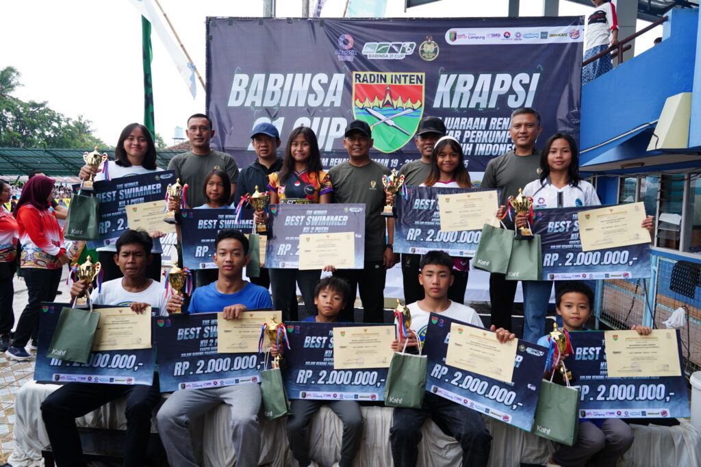 BANYUWULU.COM- Bandar Lampung — Kejuaraan Renang Antar Perkumpulan Seluruh Indonesia (KRAPSI) Babinsa 21 CUP 2025 yang digelar dalam rangka memperingati Hari Juang TNI Angkatan Darat (TNI AD) yang digelar di Kolam Renang Pahoman, Jl. KH. Ahmad Dahlan, Pahoman Teluk Betung Bandar Lampung, resmi ditutup oleh Kasdam XXI/Radin Inten (RI), Brigjen TNI Andrian Susanto, S.I.P., M.Han., M.I.Pol. Minggu (21/12/2025).