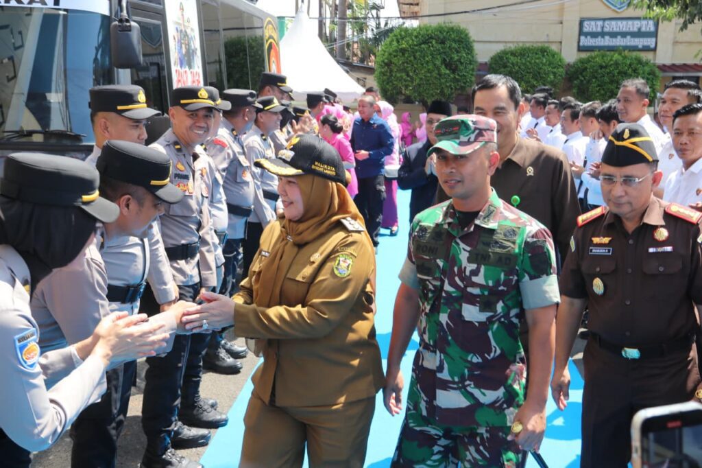 Acara yang berjalan tertib dan lancar ini diramaikan oleh kehadiran sejumlah pejabat kunci. Di antaranya Wakapolda Lampung Brigjen Pol Dr. Ahmad Ramadhan, S.H., M.Si., M.H., Walikota Bandar Lampung Hj. Eva Dwiana, Kapolresta Bandar Lampung Kombes Pol Alfret Jacob Tilukay, S.I.K., M.Si., serta pimpinan dari Kejaksaan, Pengadilan Negeri, Pengadilan Agama, dan DPRD Kota Bandar Lampung.