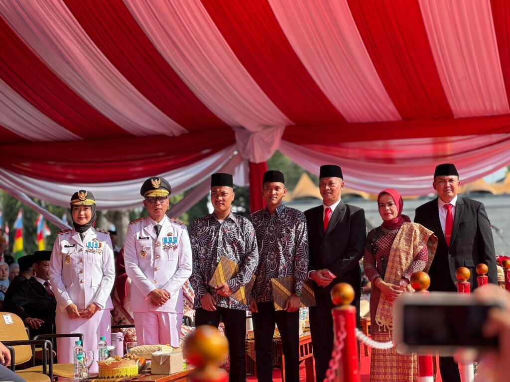 BANYUWULU.COM- Bandarlampung -Usai memimpin upacara peringatan Hari Ulang Tahun Kemerdekaan Republik Indonesia ke-80, Gubernur Lampung Mirzani menyerahkan remisi secara simbolis kepada dua orang perwakilan warga binaan Lembaga Pemasyarakatan (Lapas) Narkotika Kelas IIA Bandar Lampung.