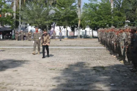 Kesiapan Pemilukada, Satpol PP dan Satlinmas Pj. Bupati Pringsewu Dr. Marindo Kurniawan, ST., MM Pimpin Apel Gelar Pasukan