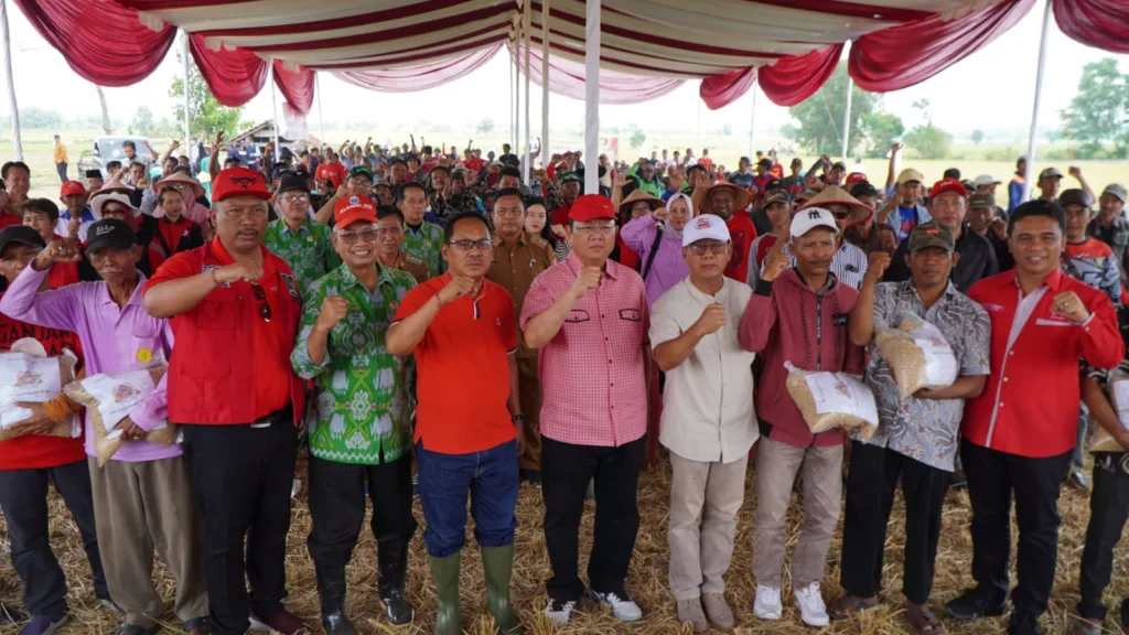 Banyuwulu.com – Tubaba – Ketua DPRD Lampung Mingrum Gumay SH., MH mendampingi Ketua Komisi IV DPR-RI Sudin menghadiri panen raya padi Mari Sejahterakan Petani (MSP) musim tanam gadu tahun 2023 di areal persawahan Tiyuh Daya Asri Kecamatan Tumijajar, Kabupaten Tulangbawang Barat, Selasa pagi (10/10)