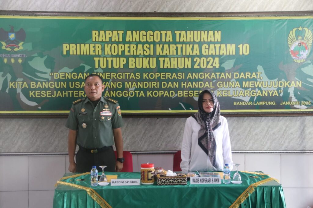 BANYUWULU.COM- BANDAR LAMPUNG — Dalam rangka tutup buku Tahun 2024, Primkop Kartika Gatam10 Bandar Lampung, menggelar Rapat Anggota Tahunan (RAT). Bertempat di Markas Kodim 0420/Kota Bandar Lampung, pada Rabu (15/01/2025).