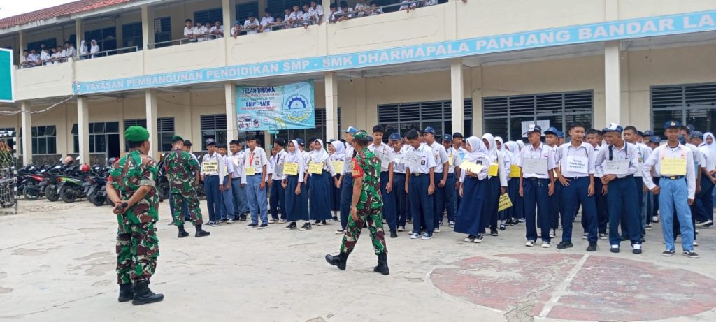 Koramil 410-01/PJG Laksanakan Program Bina Mental dan Karakter Disiplin Bagi Siswa-Siswi SMK Dharmapala Panjang, Bandar Lampung