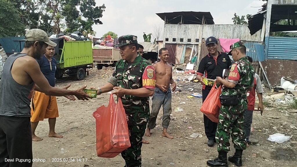 Pukul 14.00 WIB, rombongan yang dipimpin langsung oleh Danramil tiba di Tempat Pembuangan Sampah Terpadu (TPST) Beringin Jaya. Sebanyak 25 paket makanan hangat dibagikan kepada para pemulung dan warga sekitar yang menggantungkan hidupnya dari lokasi tersebut.