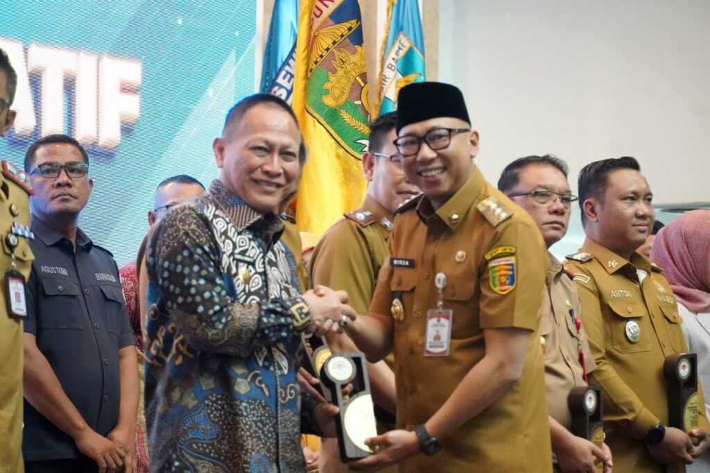 BANYUWULU.COM- Bandar Lampung – Gubernur Lampung, Rahmat Mirzani Djausal menyerahkan Penghargaan Keterbukaan Informasi Publik kepada sejumlah lembaga pada puncak acara Anugerah Keterbukaan Informasi Publik Provinsi Lampung Tahun 2025 yang digelar di Balai Keratun Lantai 3, Senin (8/12/2025).