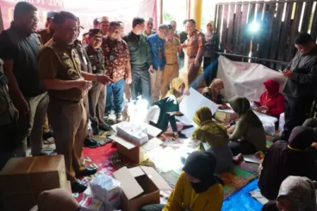 BANYUWULU.COM – Penjabat (Pj) Bupati Tulangbawang Barat (Tubaba) Drs. M. Firsada, M.Si. meninjau langsung proses pelipatan surat suara Pemilihan Umum (Pemilu) serentak yang akan berlangsung 14 Februari 2024 mendatang.