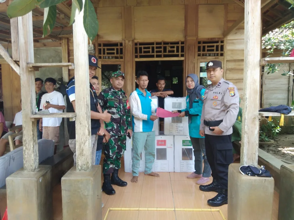 Pastikan Logistik Pemilu Aman, Babinsa Kasui Bersama Bhabinkamtibmas Kawal Pendistribusian Kotak Suara Ke TPS.