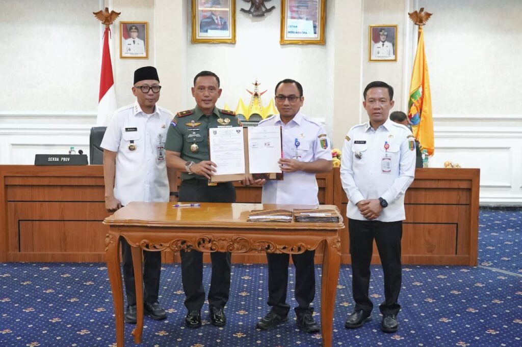 Penandatanganan dilakulan oleh Plt. Badan Pengelolaan Keuangan dan Aset Daerah (BPKAD) Provinsi Lampung, Nurul Fajri, Pangdam XXI/Radin Inten Mayjen Kristomei Sianturi, Danrem 043/Garuda Hitam Brigjen Haryantana dan perwakilan dari unsur TNI dan Polri.