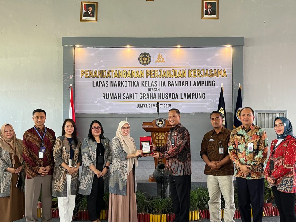 BANYUWULU.COM- Bandarlampung – Penandatanganan Perjanjian Kerja Sama Antara Lembaga Pemasyarakatan Narkotika Kelas II A Bandar Lampung Dan Rumah Sakit Graha Husada Tentang Pemberian Pelayanan Kesehatan Warga Binaan Pemasyarakatan (Wbp) Dan Pegawai, Jumat (21/03)