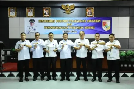 “Jadi, saya mengharapkan adaptif itu bukan secara pribadi, namun adaptif secara tanggungjawab kedinasan. Setiap program kerja yang dibebankan harus sesegera mungkin dikerjakan.” Ujar Penjabat (Pj) Bupati Tulang Bawang Barat Drs. M. Firsada, M.Si pada penandatanganan Kontrak Kerja (PK) dan Penyerahan Dokumen Pelaksanaan Anggaran (DPA) diruang Rapat Bupati, Setkab Tubaba, Rabu (10/1/2024).